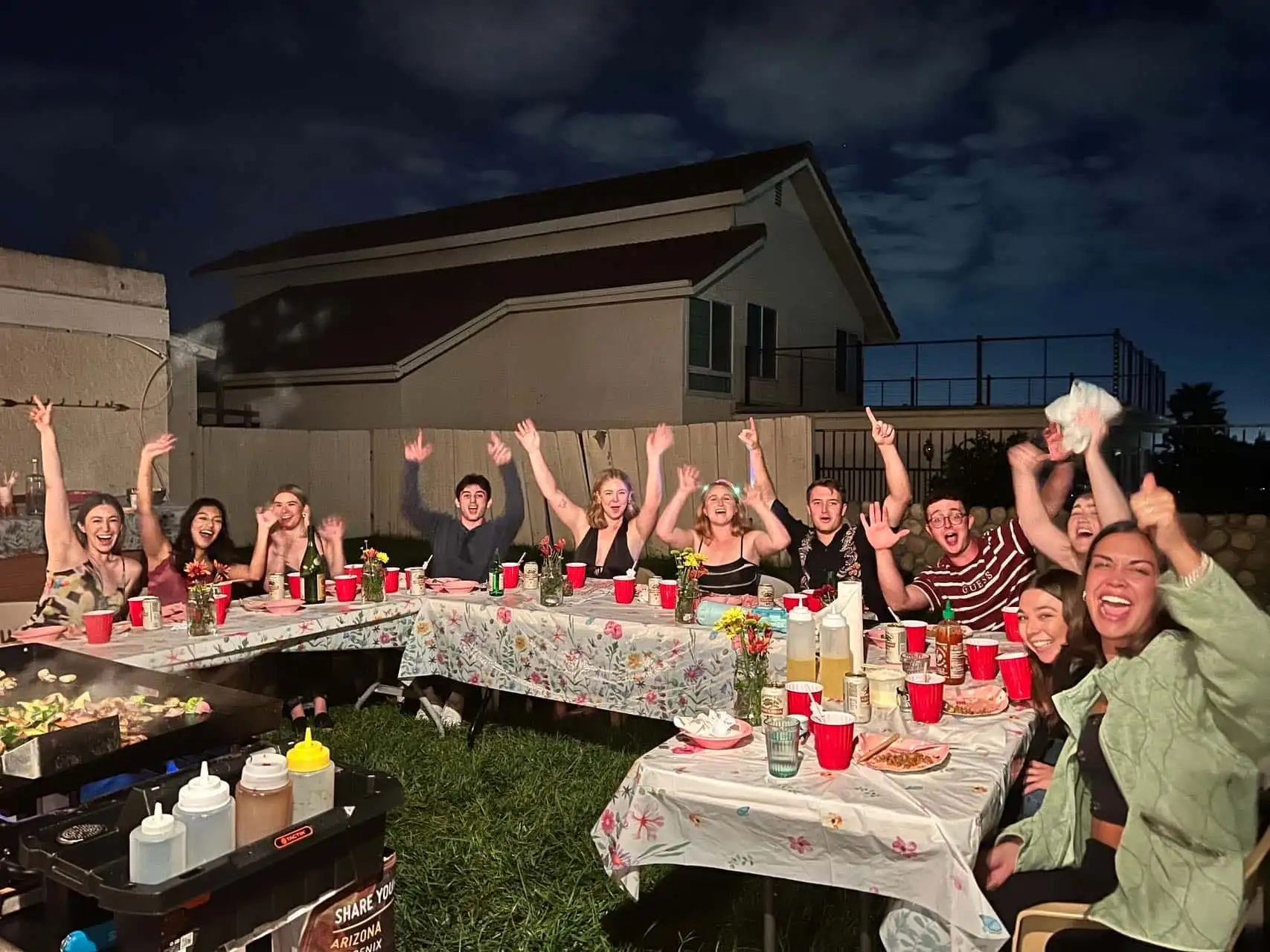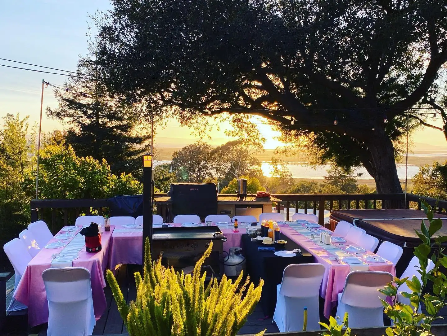 You'll just need to provide tables, chairs, plates, and utensils to create a personalized setting (We're happy to assist if needed.) The rest is in our hands—serving each guest a full hibachi meal with salad, vegetables, fried rice, and two proteins of their choice.